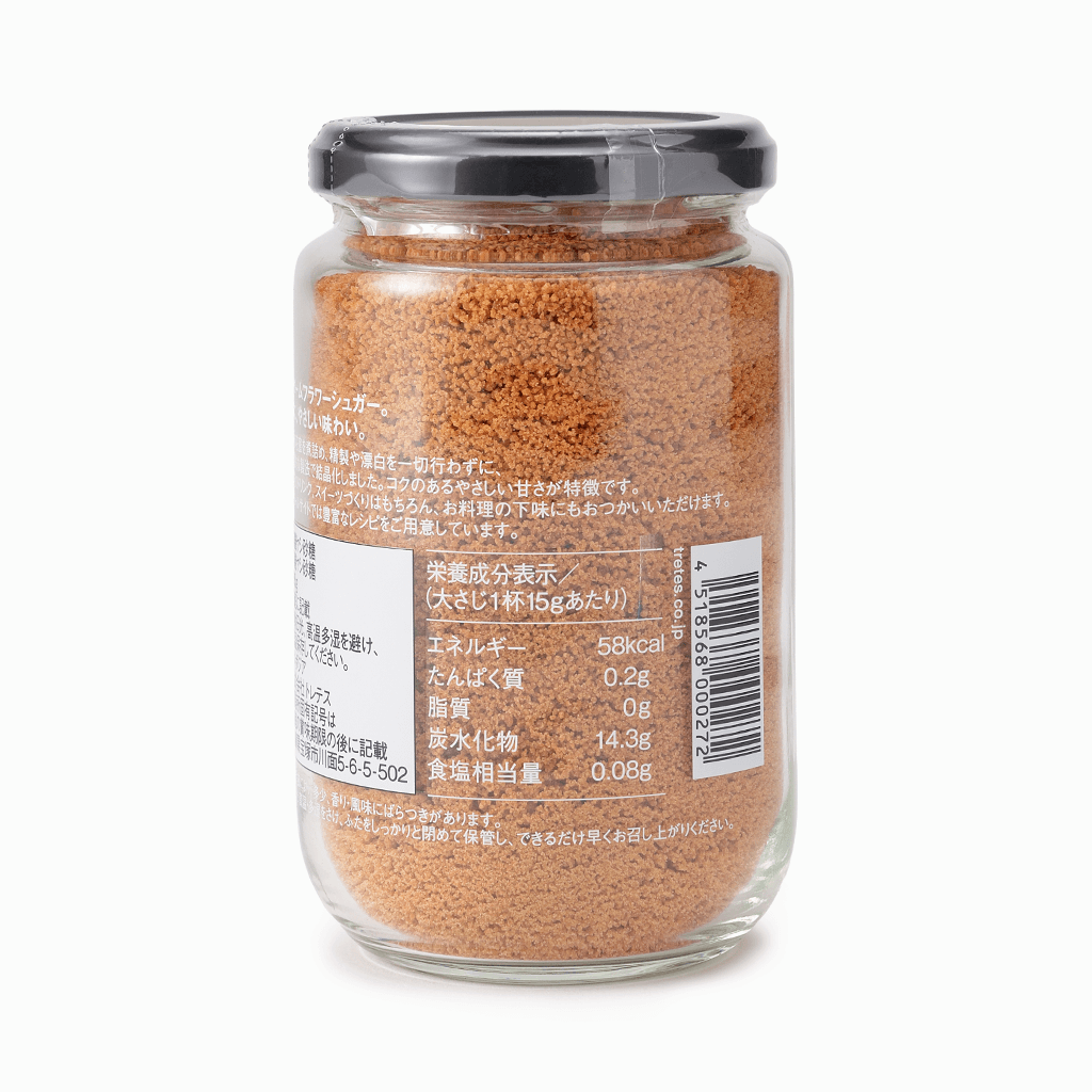 農薬・堆肥・肥料等を使用せず育てられたヤシの花蜜を原料としたパームフラワーシュガー。製造工程も樹液を沸騰させて粉末化させただけのシンプルな工程。