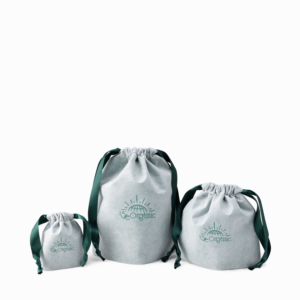 15/e organic(フィフティーンオーガニック)オリジナル不織布ギフト巾着袋が完成しました!