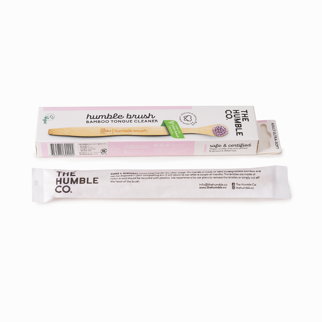 歯科医の指導・監督のもと製造された、スウェーデン生まれの舌クリーナー。持ち手部分には竹材が使用されているので、燃やしても有害となる毒素が放出されることもありません。ブラシ部分は、植物由来原料を使用したバイオベースナイロンでできており、優しく舌苔を掻き出します。