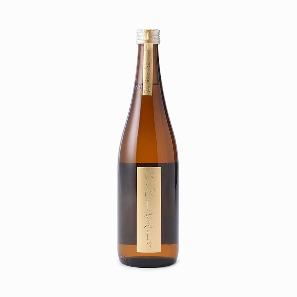 琥珀色のとろりとしたお酒で、からだにやさしく力強い味わいをもつ純米原酒は、仁井田本家の酒づくりの原点です。
