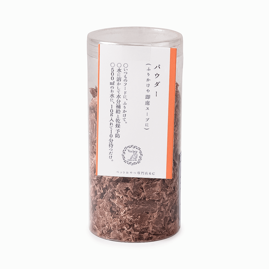 ドライフードにふりかけるだけで嗜好性UP!水に溶かせば、特別な“鹿出汁スープ”に。