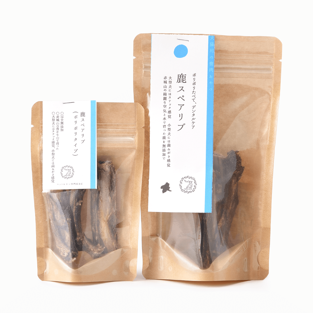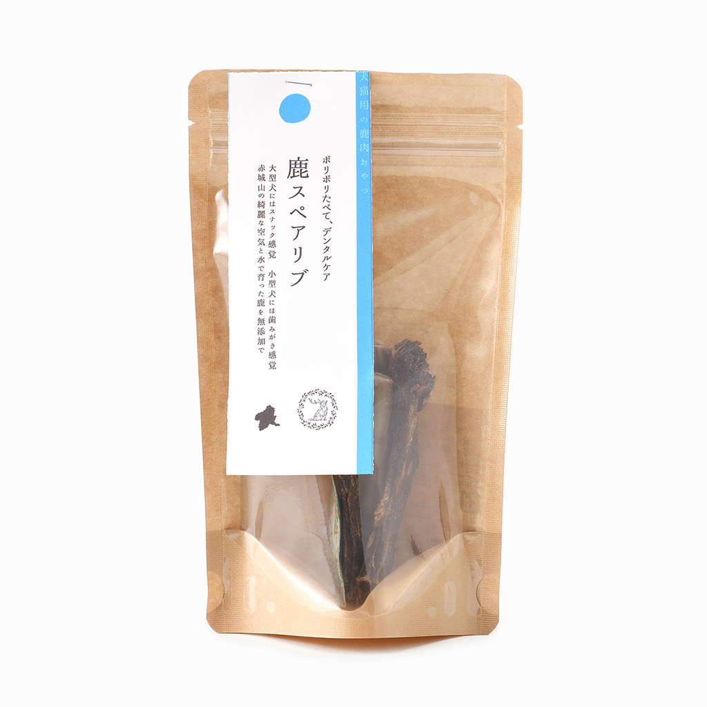 スペアリブに使うのは、鹿の中でも特に柔らかい骨。固すぎず、ポリポリと噛みやすいので、かじる楽しさを安全に味わえます。