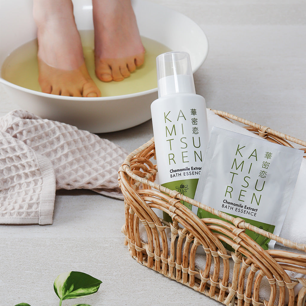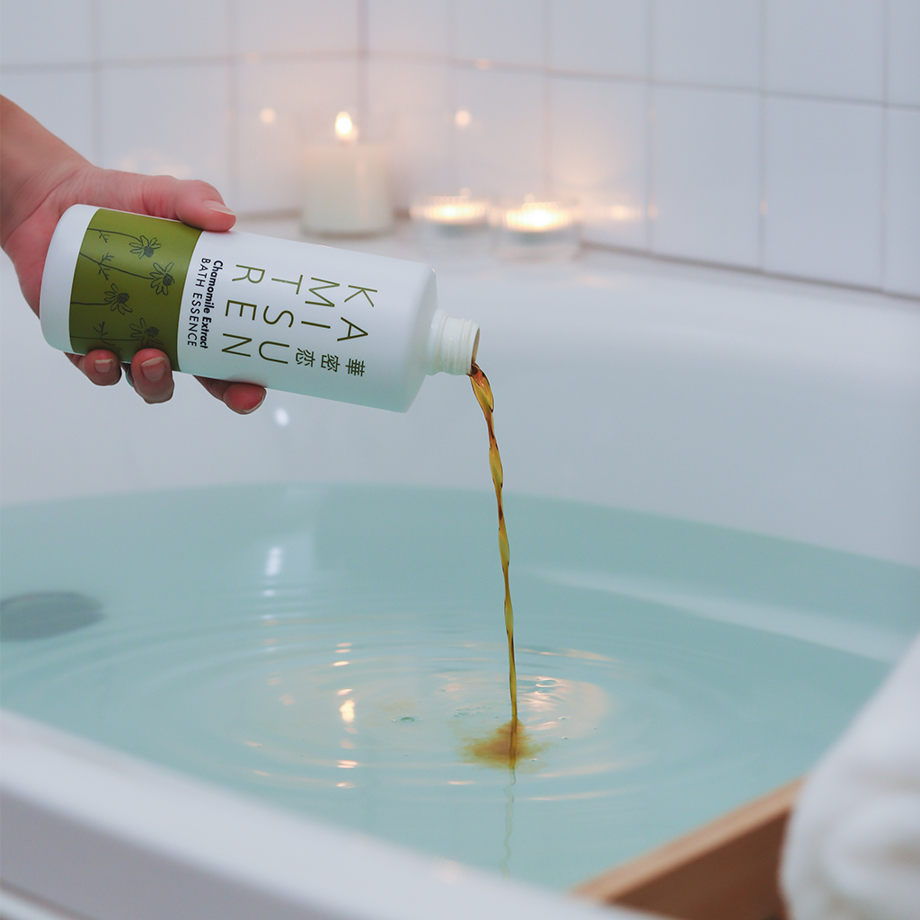 合成香料、合成着色料、鉱物油、合成保存料などの合成成分は一切使わず、国産カモミールの有効成分を存分に引き出したカミツレエキス100%の薬用入浴剤(医薬部外品)です。