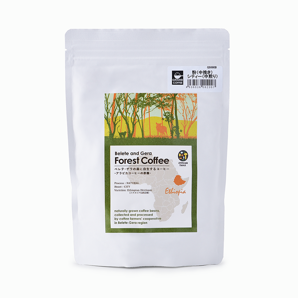 原種のコーヒーが手付かずで育つエチオピア南西部ベレテ・ゲラの森の浅煎りコーヒーです。農薬はもとより、化学肥料も使わない自生するコーヒー豆を、水洗せずに皮付きのまま天日乾燥するナチュラル製法で仕上げています。