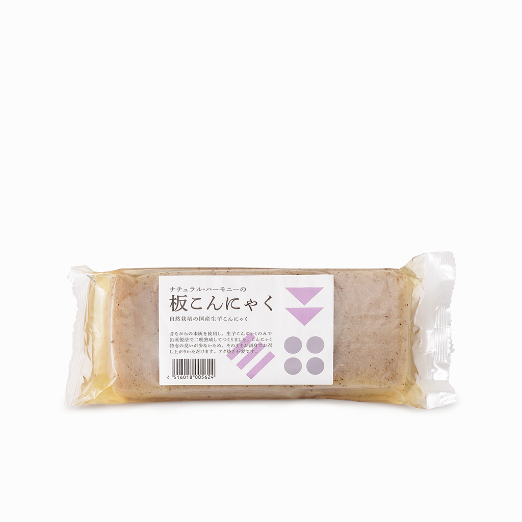 農薬・肥料も一切使用しない、貴重な自然栽培の生こんにゃく芋を使用した板こんにゃく。
