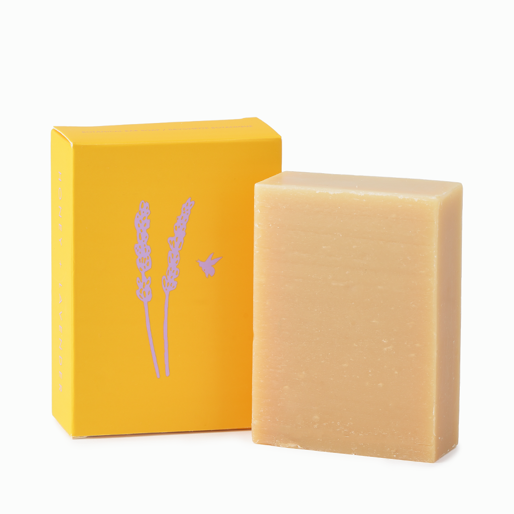 オルターのハーブガーデンで育てたラベンダーから抽出したエキスと、地元の養蜂家が採取したローハニー(非加熱)を加えた石けん。