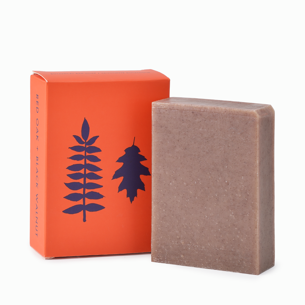 粉砕したブラックウォールナットの殻とレッドオークの樹皮を組み合わせた、スモーキーでウッディーな香りの石けん。肌のすみずみまでしっかりと洗浄できます。ブラックウォールナットとレッドオークには、非常に効果的な抗菌作用があり、肌をなめらかで清潔に保ちます。