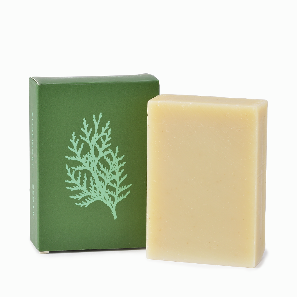 オルターのハーブガーデンで育てたローズマリーと地元のシダーで、爽やかさとウッディーさをあわせたリラックスできる香りの石けん。